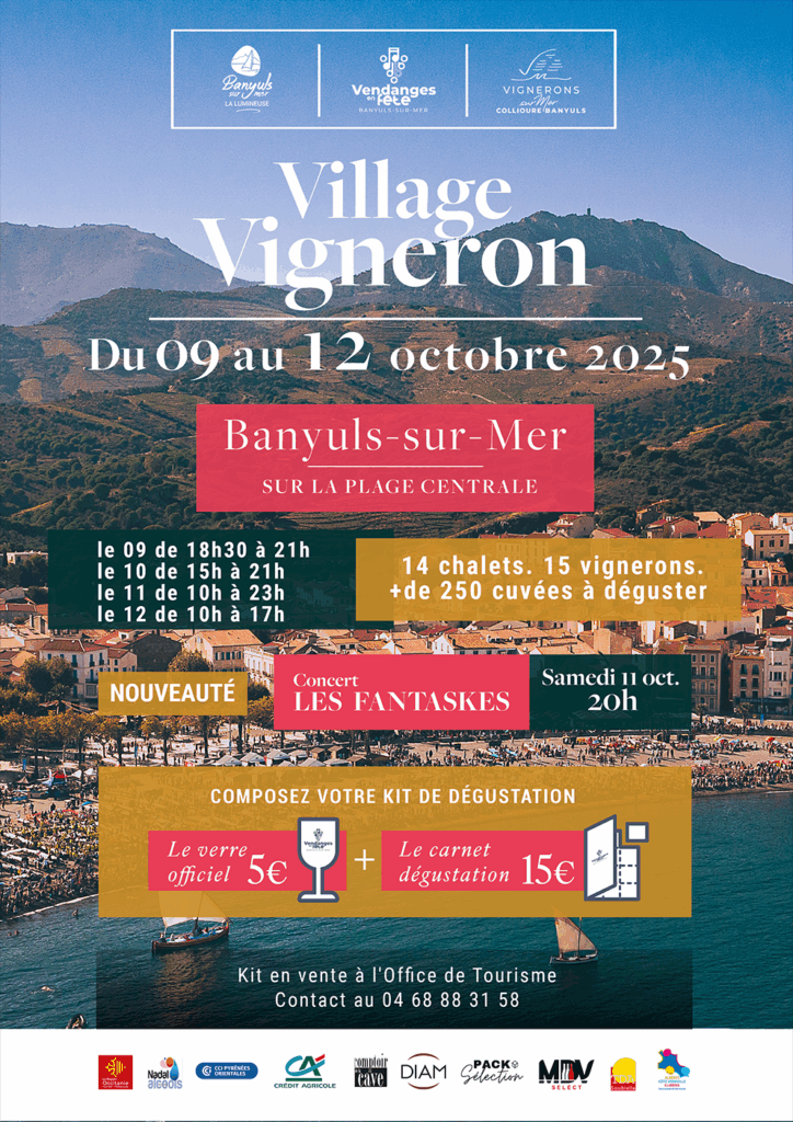 Partez à la découverte du vignoble du Cru Banyuls & Collioure et de ses vignerons. Dégustations, palais des terroirs, animations musicales, visites de caves, atelier du goût, atelier des 4 saveurs, village vigneron, expositions, cinéma, théâtre, repas vigneron…