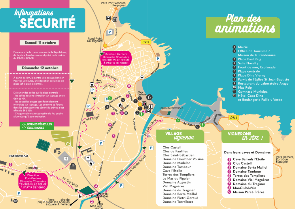- Dans le cadre du marché artisanal et des producteurs, voici les restrictions de circulation de 6h00 à 18h00 (les commerçants s’installeront entre 6h00 et 8h30 maximum) : circulation, arrêt et stationnement interdits rue Saint Sébastien (de l’av. de la République jusqu’à la rue St Jean Baptiste), av. du Puig del Mas (de la Marenda jusqu’à la cave l’Etoile), rue Dugommier, rue Mirabeau, rue Saint Pierre.